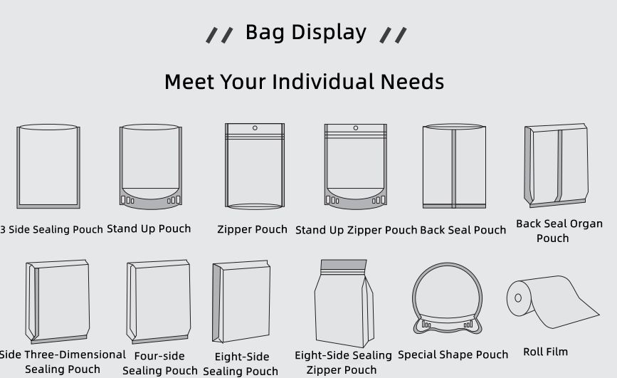ក្រៅពីការវេចខ្ចប់ម្ហូបអាហារនៃស៊េរីនេះគឺបរិស្ថាន - ផលិតផលក្រដាសរួសរាយរាក់ទាក់យើងអាចផ្តល់កាបូបក្រដាសចំនួន 3 ប្រភេទគឺកាបូបក្រដាស 1 សន្លឹក។ តម្រូវការសម្រាប់ការបញ្ជូនពន្លឺនៃការផ្ទុកវេចខ្ចប់ពន្លឺត្រូវបានបែងចែកទៅជាអាលុយមីញ៉ូមសុទ្ធនិងអាលុយមីញ៉ូម។ ប្រសិនបើអាហាររបស់អ្នកមិនអាចប៉ះពាល់ដោយផ្ទាល់ទៅនឹងព្រះអាទិត្យអ្នកអាចជ្រើសរើសអាលុយមីញ៉ូមសុទ្ធដែលអាចចៀសវាងពន្លឺព្រះអាទិត្យនិងធានាបាននូវគុណភាពផលិតផល។ នៅផ្នែកខាងក្នុងនៃកញ្ចប់របស់យើងត្រូវបានធ្វើពីចំណីអាហារ PE PE ដែលអាចទាក់ទងបានដោយសុវត្ថិភាពជាមួយនឹងរបាំងមុខមុខរបស់ Food.External អាចជ្រើសរើសខ្សែភាពយន្ត Matt និងខ្សែភាពយន្តដែលភ្លឺស្របតាមចំណង់ចំណូលចិត្តរបស់អ្នក។